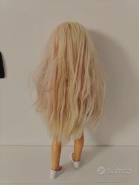 Nancy con capelli lunghi e biondi, perfetta per creare acconciature. I capelli si possono colorare con gessetti (non inclusi) e sono lavabili per tornare allo stato originale. Venduta come in foto, altezza circa 43cm