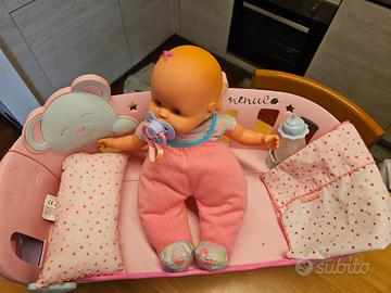 Bambola Nenuco completa di tutti gli accessori. Carillon luminoso e sonoro perfettamente funzionante. Possibilità anche di aggancio al lettino