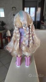 Bambola Unique Eyes, sguardo che ti segue. Completa dei suoi abiti (gonna top cappotto stivali). Integra (nessuna macchia, non rotta). Gambe pieghevoli. Lunghi capelli biondi. Altezza circa 20 cm.