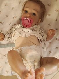 Bambola artigianale con microruting di lana mohair ciuccio magnetico appesantita con microsfere per dare peso e imbottitura fiocco .Nome artista LA Bottega Stregata ,la pagina su Istagram è mia . I prezzo della bambola 220