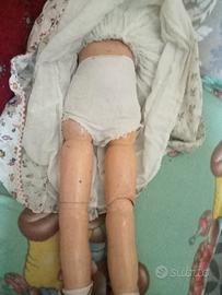vendo Bambola in legno tutta snodata ha i capelli veri e gli occhi in vetro, nn ha rotture ne filature e alta cm 70 circa.