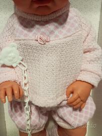 La bambola ha sia il corpo che braccia e gambe in vinile ammorbidito per cui è posizionabile e può stare seduta. È adatta per fare il bagnetto.