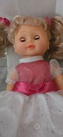 Vestitino originale. Capelli tutto perfetto considerando l'etá. Canta, parla, conta e cammina.