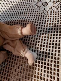 bambola vintage anni 60, viso e arti in porcellana, vestito velluto blu e pizzo, h 28 cm