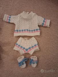 Bellissima Cip Cip Migliorati, in ottimo stato, con scatola e abiti originali. È alta 28 cm, ha capelli bellissimi e occhi cliccanti, corpo in vinile perfetto. No macchie, no rotture. Indossa un camicino e cuffietta in pizzo San Gallo, perfetti. Ha anche un completino in maglia, con babbucce, rammendato in diversi punti, ma saldo. Vedi foto. La scatola è in ottime condizioni, all'interno c'è il cuscino originale. Una bellezza.