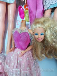 lotto composto da 9 Bambole anni 80, comprese barbie dell'era superstar, buone condizioni generali. Ulteriori foto disponibili Preferirei vendere il lotto intero Premetto che ho cercato di guardare tutto ma potrebbe essermi sfuggito qualcosa, sono "giocate" e da lavare, di seguito i dettagli: 🩷 Bambola Mattel Lady Lovely Locks in ottime condizioni, con vestito, scarpe e 3 ciocche aggiuntive, piccoli segni sul collo che però non è rotto 🩷 Bambola Jem and the Holograms Rock 'n Curl Jem Doll Hasbro 1986 in ottime condizioni, con vestito, calze, 1 scarpa, capelli da sistemare 🩷 Barbie and The Rockers Mattel Diva, ottime condizioni, segnalo pantalone scucito, piccoli segni sul collo che però non è rotto, ha solo 1 orecchino e 1 calza 🩷 Barbie Jeans / Feeling Fun, ottime condizioni, con orecchini, no anello, manca 1 automatico nella gonna, segno su una coscia 🩷 Barbie Mamma Famiglia Cuore Heart Family, buone condizioni generali, con vestito e calze, no anello, crepa collo 🩷 Barbie Fun Time, ottime condizioni, con outfit completo di gioielli, piccola screpolature sulla coscia, giuntura laterale collo leggermente aperta 🩷 Ken Secret Jewel, buone condizioni, testa che tende a staccarsi, outfit incompleto e non perfetto 🩷 Barbie Luci di Stelle, Dream Glow, condizioni discrete, collo rotto, perno all'interno della testa, compresi vestito e stola 🩷 Skipper Beach Blast, ottime condizioni, con costume originale, segnalo macchie sulle gambe, difetto congenito del vinile di questa epoca.