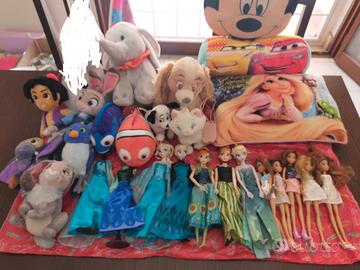 Come in foto, vendo bambole e peluches Disney per offrire ad una bimba la gioia che hanno dato a mia figlia, ormai grande per giocarci.