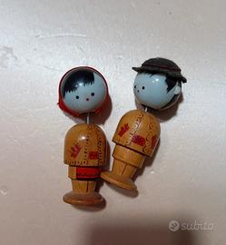 Bamboline in legno che vogliono stare vicini, hanno i visi calamitati