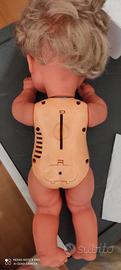 3-- Bambolotto biondo capelli corti Furga, di 45 cm. dietro ha un dischetto ma non so se funzioni ancora, quindi lo do come non funzionante.