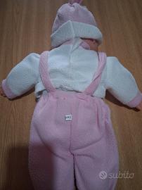 Morbido bambolotto con un adorabile cappellino e una tutina coordinata. Perfetto per i più piccoli. - Cappellino rosa con scritta Happy Baby. - Tutina in pile rosa e bianco con applicazione a forma di orsetto. - Materiale morbido e confortevole.