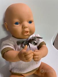 Bambolotto MINILAND DOLLS - con solo maglietta - alto 40 cm - macchiato di penna sulla testa - la maglietta va lavata