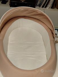 Bamboom Baby Nest. Utilizzato pochissimo, solo in casa per qualche mese. Mai portato fuori casa, condizioni pari al nuovo. Colore rosa tenue. Comprensivo di zaino/custodia per trasportarlo facilmente e cappottina parasole.