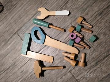 banchetto in legno da lavoro bimbo usato (segni di usura segnalati in foto) ma ancora in buono stato tutti i pezzi sono compresi altezza 31 cm larghezza 40 cm profondità 25 cm