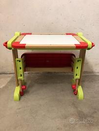 Banco per bambini usato, si può usare come banco o come lavagna, lo si può girare per scrivere con pennarelli (parte bianca) o con gessi (parte nera), anche magnetico.