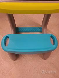 bel banchetto da disegno con porta pennarelli e lavagna con doppia faccia per gessi o pennarelli, oppure qualsiasi cosa da disegnare.