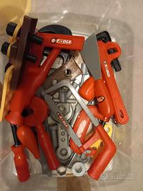 Vendo banco da lavoro per bambini marca Black&Decker. Manca la manopolina del morsetto. Venduti assieme un set di attrezzi + caschetto. No spedizione.