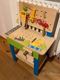 Vendo banco da lavoro Hape E3000 in legno completo di accessori: martello, sega, cacciavite, chiave inglese, morsa, viti, dadi e tanto altro — perfetto per stimolare gioco, creatività e manualità!