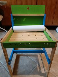 Banco da lavoro giocattolo Lidl, tutto il legno, per bimbi da 3 a 8 anni. Alcuni pezzi sono rotti o mancanti vedi elenco e foto e confrontare con elenco riportato sulla scatola (vedi 2a foto):