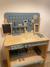 Vendo banco da lavoro Little Dutch originale, realizzato in legno, dai colori delicati azzurro/verde pastello. Gioco educativo e creativo, ideale per sviluppare manualità e fantasia.