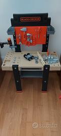 Vendo banco da lavoro per bambini, marca smoby ( black + decker), completo di morsa, viti , chiodi , cacciavite, chiave inglese, trapano, martello, sega e un kit di auto da costruire.