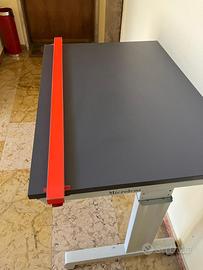 Tavolo/banco ergonomico Microlens Altezza regolabile: il piano può essere facilmente posizionato a varie altezze in modo da poter essere usato da bambini/ragazzi di differenti stature Inclinazione regolabile: grazie ad uno specifico sistema pneumatico è possibile inclinare il piano di lavoro senza nessuna fatica e bloccarlo in qualsiasi angolazione Piano appoggia gomiti: il banco dotato di un appoggia gomiti estraibile per facilitare la scrittura a piano inclinato. L'appoggia gomiti è dotato di un sistema di bloccaggio quando viene estratto Piano magnetico: il piano reclinabile magnetico. In posizione inclinata, delle semplici calamite possono sorreggere un foglio di carta per la scrittura o il disegno Regolo di supporto: l'utilizzo del comodo regolo di supporto (posizionabile in altezza) permette di sorreggere libri quando il piano è inclinato. Dimensioni e caratteristiche tecniche: Piano di lavoro magnetico: 90 x 60 cm Ingombro max: 100 x 65 cm Altezza min piano: 70 cm Altezza max piano: 90 cm Inclinazione piano: da 0° a 85° Peso: 30 kg SOLO RITIRO IN PRESENZA