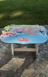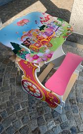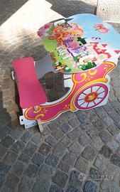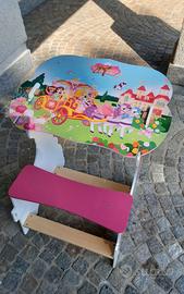Banco per gioco e disegno bimbi. Si puo' montare in due diverse configurazioni con altezze diverse per adattarlo a tutte le eta'. 1) Altezza piano disegno 58 cm., piano seduta 31 cm. (foto 2) 2) Altezza piano disegno 41 cm., piano seduta 25 cm. (foto 1) Rimangono invariate le misure del piano disegno (larghezza 57cm) e della seduta (larghezza 46cm). Possibile ritiro sul posto o consegna in zona Como, Cantu'. Spedito smontato.