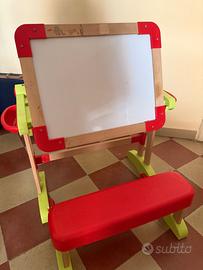 Banco Scuola Modulo Space in Legno con Accessori marca Smoby:Banco scuola unico, in legno e plastica, due in uno, da una parte piano di lavoro a lavagna magnetica e dall'altra piano di lavoro a lavagna in ardesia, completo di accessori, piccolo scomparto laterale porta accessori, scomparto inferiore porta oggetti, due posizioni della lavagna, in verticale o come piano del banco, è facile da riporre e chiuso occupa poco spazio.