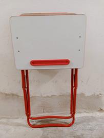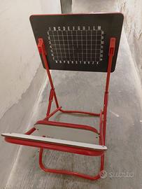 Banchetto scuola con lavagna alfanumerica e tavolo vintage di inizio anni '90, in ferro leggero e richiudibile per fare spazio. Presenta solo qualche segno d'uso, ma non ha graffi ed è in buonissime condizioni. Ottimo come idea regalo per bambine e bambini dai 4-5 anni in su per giocare con numeri e lettere e per disegnare e scrivere.