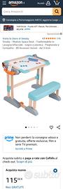 Banco scuola unico, solido , in legno di Faggio e plastica, due in uno, da una parte piano di lavoro a lavagna magnetica e dall'altra piano di lavoro a lavagna in ardesia nera.