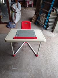 Banco scuola per bambini ,con cassetto porta biro, pennarelli, racchiudebole,con seggiolini che si racchiude