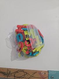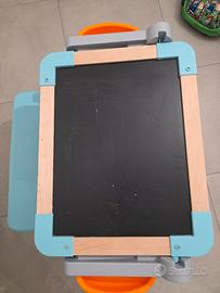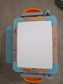 Banco scuola per bambini in buono stato, con qualche scritta come da foto, con lavagna magnetica e lavagna per gessetti. include anche lettere alfabeto magnetiche.