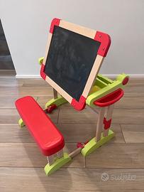 Banco scuola Smoby in legno, versatile con diverse impostazioni della lavagna e del banco, completa di lavagna magnetica con numeri e lettere magnetici da attaccare.