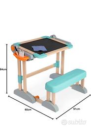 Banco scuola in legno e plastica regolabile: può essere utilizzata come banco scuola e come lavagna; ripiegabile in 5 secondi senza attrezzi