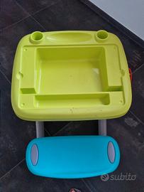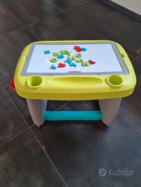 Banco scuola marca Smoby comprensivo di piano scrittura per gessetti o pennarelli. Incluso anche di lettere e numeri magnetici.