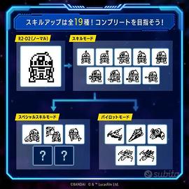 Allena R2-D2 per padroneggiare varie abilità con STAR WARS R2-D2 TAMAGOTCHI. Prenditi cura di R2-D2 mantenendolo carico e pulito e giocando a due minigiochi (antincendio e Dejarik "holochess"). Ci sono 19 abilità per R2-D2 da imparare e 7 minigiochi da sbloccare, a seconda del suo livello di abilità. Assicurati di mantenere felice il tuo R2-D2. Se lo trascuri troppo a lungo, i Jawa potrebbero portarlo via! Nuovo, mai aperto.