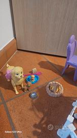 Vendo accessori campeggio barbie con cavalli e cani. Il cane grande non è funzionante.