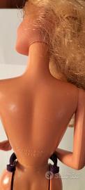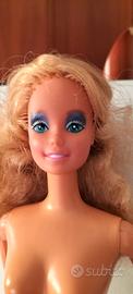 Barbie And The Rockers 1985. Bellissima Barbie, il corpo è integro, gli arti tengono la posizione e le ginocchia cliccano due volte Il trucco è intatto, ma in un occhio un pallino bianco è leggermente più grande I capelli sono stopposi sui ricci, bisognerebbe rifare l' acconciatura. Sempre nei capelli, ci sono dei pezzetti di elastico Il collo è integro La Barbie proviene da un ambiente di fumatori, io l' ho lavata, ma consiglio sempre di rifarlo A disposizione per ulteriori informazioni e foto