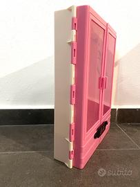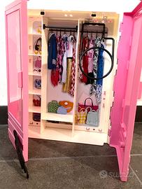 Barbie Ultimate Closet è progettato per essere trasportato con una maniglia per il trasporto. Decorato con lo stile inconfondibile di Barbie, di colore rosa. Utile per tiordinare i vestitini di barbie.