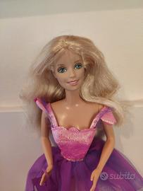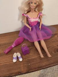 Barbie bionda con abito tulle, scarpe, borsina e spazzola, presenta difetto piede come da foto