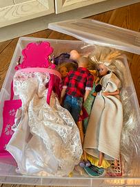 Regalo scatola con molte barbie e accessori vari