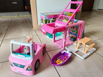 Con tante diverse trasformazioni, 3 veicoli, 5 spazi abitativi, il gioco a 360 gradi e i 50 accessori, il DreamCamper 3 in 1 di Barbie incoraggia i più piccoli a vivere l'avventura e a realizzare i propri viaggi da sogno! L'immaginazione ti porterà a esplorare le diverse aree gioco, tra cui un soggiorno per rilassarsi, un patio con piscina, un bagno con doccia a scomparsa, una camera da letto sul tetto e una cucina con tutto ciò che occorre per divertirsi cucinando. Il camper si trasforma per arricchire ancora di più il gioco: aprilo e rivela una barca e un pickup a 4 posti, gira il tavolino per rivelare un fuocherello e solleva il tetto del camper per far apparire un letto da loft. Riponi tutto all'interno, chiudi e rimettiti in strada verso la tua prossima destinazione. Ha una linea con dettagli esclusivi, come le righe colorate, i logo di Barbie, i particolari argentati (sulla griglia e sulle ruote che girano), per tanti viaggi memorabili! Ogni volta vivrai una nuova avventura con i 50 pezzi gioco. Gli accessori includono l'attrezzatura da pesca, un tavolo da picnic con 4 posti, articoli da bagno, un sacco a pelo, coperte e tutto ciò di cui le bambine hanno bisogno per vivere le loro storie da campeggio, come i marshmellow! Le piccole avventuriere da 3 a 7 anni potranno fare scoperte, esplorare e interpretare tante entusiasmanti storie di viaggio con il DreamCamper 3 in 1 di Barbie. Aggiungi ancora più varietà alle storie con le bambole e gli accessori Barbie (ognuno in vendita separatamente, secondo disponibilità).