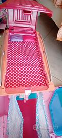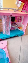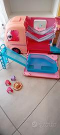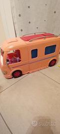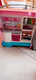 Barbie camper dei sogni completo di accessori. Con piscina, tavolo, sedie, letto, bagno, cucina e amache. Perfettamente funzionante. In ottime condizioni.