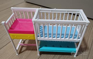 Il camper di Barbie con 2 bimbi e relativi passeggini (2), fasciatoio, 1 altalena, 2 scooter.