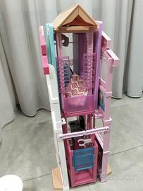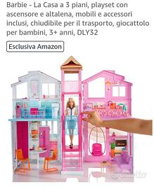 Vendo casa di Barbie a tre piani con ascensore e altalena, mobili e accessori inclusi. Richiudibile per il trasporto. In ottime condizioni come da foto.
