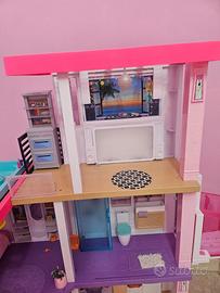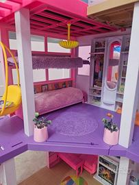 Barbie Casa dei Sogni, Casa a 3 Piani con 8 Stanze, Ascensore e Piscina con Scivolo, Oltre 60 Accessori. Le caratteristiche da sogno includono l'ascensore funzionante con cui trasportare fino a 4 bambole o una Barbie in sedia a rotelle, un nuovo studio, un garage e una piscina al secondo piano, nella quale scende uno scivolo dal piano superiore e che si può riempire con acqua per fare dei veri tuffi!