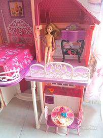 Casa delle Barbie Malibu' copleta di accessori ma con gancio ascensore Barbie rotto.