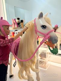 Vendo Cavallo dei Sogni di Barbie interattivo, praticamente nuovo e perfettamente funzionante! Il cavallo è super realistico: • Cammina e balla premendo i pulsanti • Se accarezzi il collo si muove • Mangia le carote facendo anche il suono • Ha i capelli lunghi da pettinare È davvero bellissimo e super divertente! Accessori inclusi: • Carote • Pettine/spazzola per il cavallo • Redini e briglie • Stivali della Barbie • Maglietta/camicia della Barbie • Casco della Barbie ‼️ NON è inclusa la bambola Barbie originale (se preferite quella in foto il prezzo è di 50€) Nota: Uno degli accessori (nella parte delle briglie) ha una piccola rottura in una delle due chiusure, ma è comunque utilizzabile senza problemi (testato). L'altra chiusura è perfetta Condizioni: praticamente nuovo Per altre foto o info scrivimi 😊