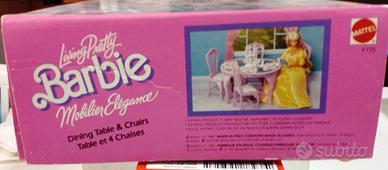 Vendo nella sua confezione originale, Barbie-Dining room tables & 4 chairs-art.4775 distribuito dalla Mattel- come NUOVO,mai aperto o giocato. Si chiede pagamento anticipato tramite bonifico bancario . No paypal. Niente consegne a mano.Niente contrassegno. Spese di spedizione e imballo a carico dell'acquirente. ASTENERSI PERDITEMPO._NIENTE SMS.Contatto per via email,attraverso il sito degli annunci.