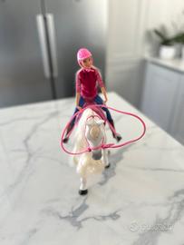Il bellissimo DreamHorse bianco ha una sella rosa con redini e la clip per la vita della bambola.