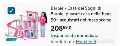 Vendo Casa dei sogni delle barbie purtroppo non va l'ascensore ma è completa di tutti i pezzi.Dimensioni: La casa è alta circa 110 cm e larga 105-114 cm.Il gioco è adatto per bambini dai 3 anni in su,nuova costa 208 euro come si vede in foto. Prezzo regalo Ritiro zona Monza,prezzo trattabile!